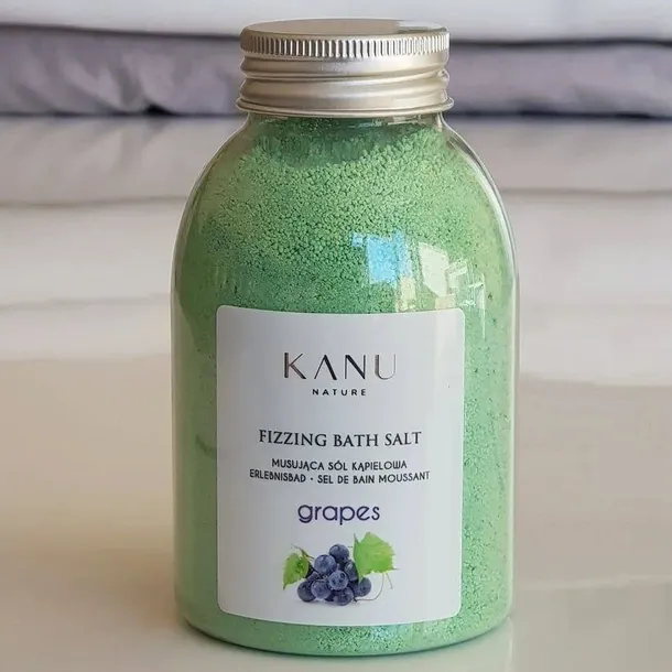 Musująca sól do kąpieli o zapachu winogronowym przeniesie Cię do włoskiej winnicy pełnej dojrzewających w słońcu soczystych owoców, w której odprężysz się po całym dniu. Ten kosmetyczny produkt zabarwi wodę w Twojej wannie na rozkoszny zielony odcień, przez co Twoje oczy również się zrelaksują.